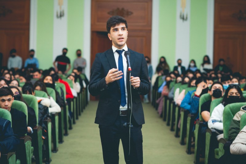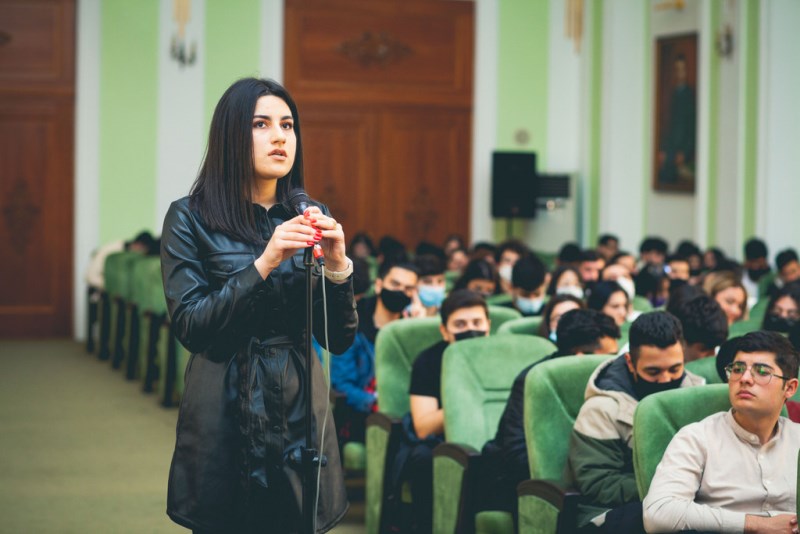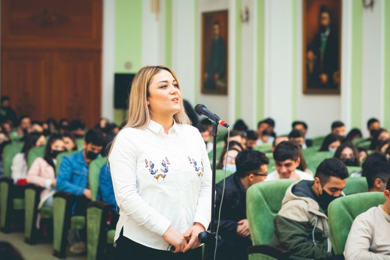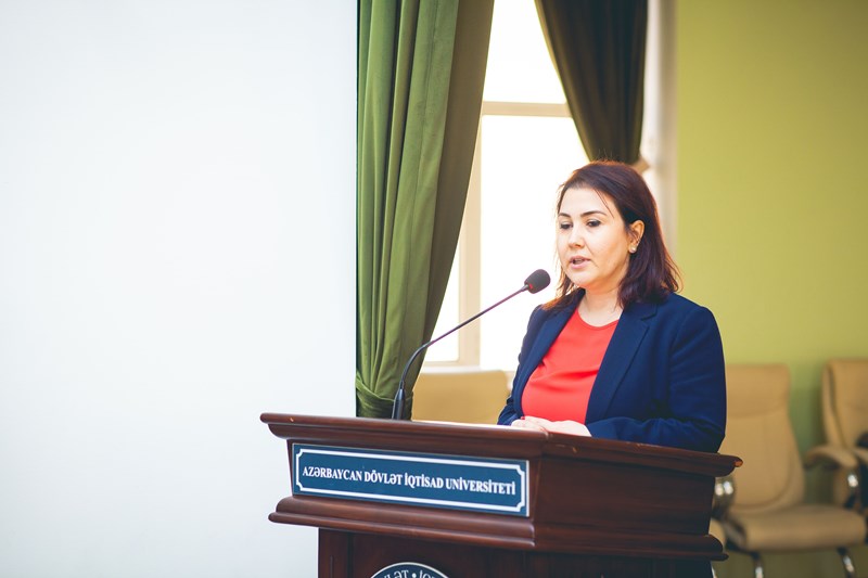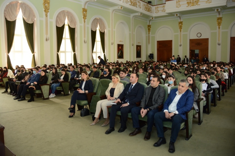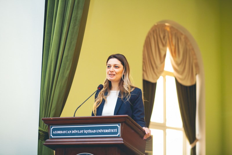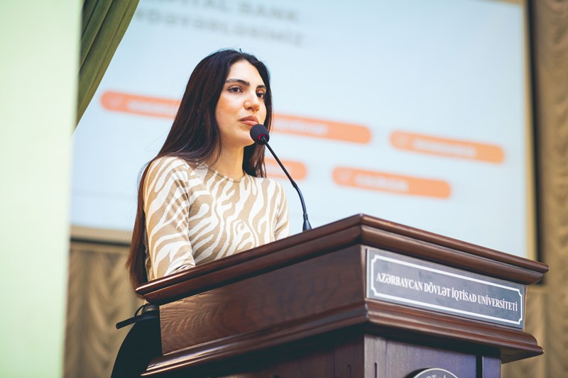 Sonra Kapital Bankın nümayəndələri Məhəmməd İbrahimov və Azadə Hacıyeva təmsil etdikləri bankın fəaliyyət istiqamətləri, vakansiyalar, təcrübə proqramları, layihələr barədə tələbələrə məlumat veriblər.