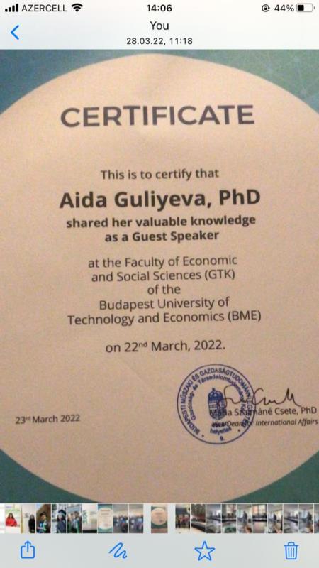 UNEC SABAH mərkəzinin rəhbəri dosent Aida Quliyeva və həmin fakültənin 15 tələbəsi Macarıstanın Budapeşt Texnologiya və İqtisadiyyat Universitetinin dəvəti ilə işgüzar səfərdə olublar.