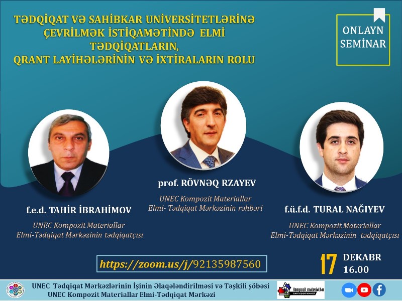 17 dekabr saat 16.00-da keçiriləcək seminara ZOOM platforması üzərindən https://zoom.us/j/92135987560 linki vasitəsilə qoşula bilərsiniz.