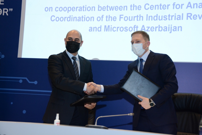 Tədbir çərçivəsində Dördüncü Sənaye İnqilabının Təhlili və Koordinasiya Mərkəzi ilə İcbari Tibbi Sığorta üzrə Dövlət Agentliyi, həmçinin “Microsoft Azərbaycan” MMC arasında əməkdaşlığa dair anlaşma memorandumları imzalanıb.
