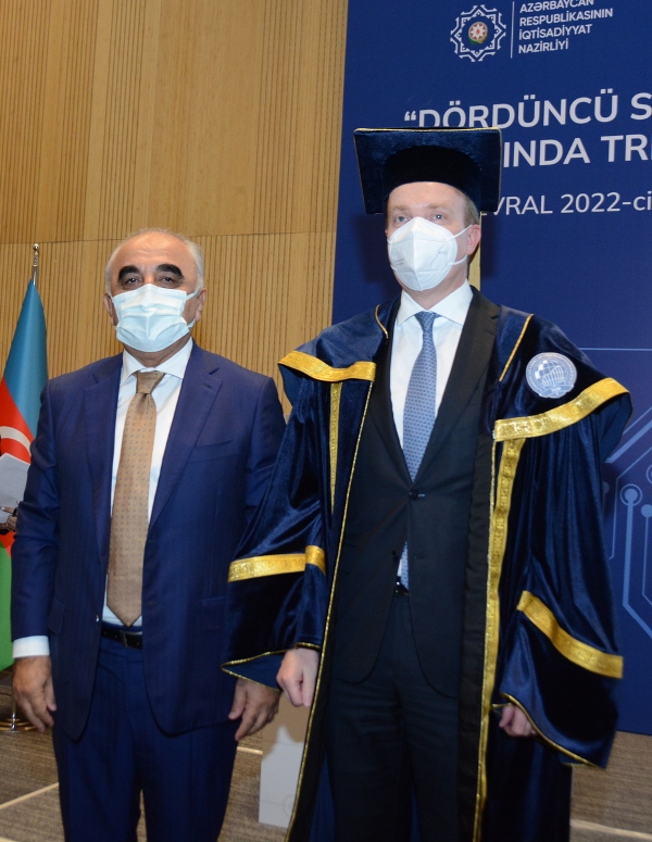 UNEC-in rektoru, professor Ədalət Muradov 4Sİ və bu çərçivədə baş verən rəqəmsallaşmanın qlobal iqtisadiyyatı yeni çağırışlarla üz-üzə qoyduğunu diqqətə çatdırıb. Bildirilib ki, dünya iqtisadiyyatının rəqəmsal transformasiyası, yüksək texnologiyalara əsaslanan istehsal ekosisteminin formalaşdırılması prosesində yaranan şərtlər 4Sİ tələblərinə cavab verən, rəqabətqabiliyyətli insan kapitalının formalaşdırılmasını zəruri edir ki, bu istiqamətdə təhsil müəssisələri daha fəal olmalıdır.