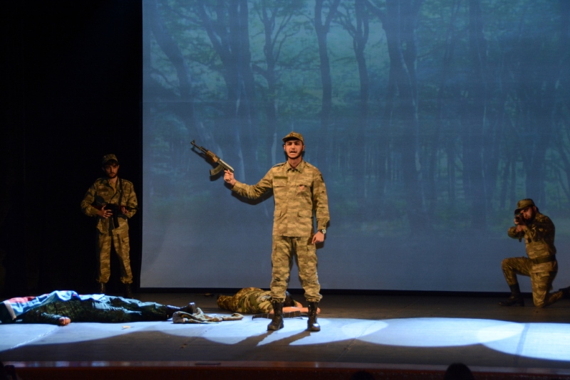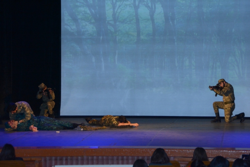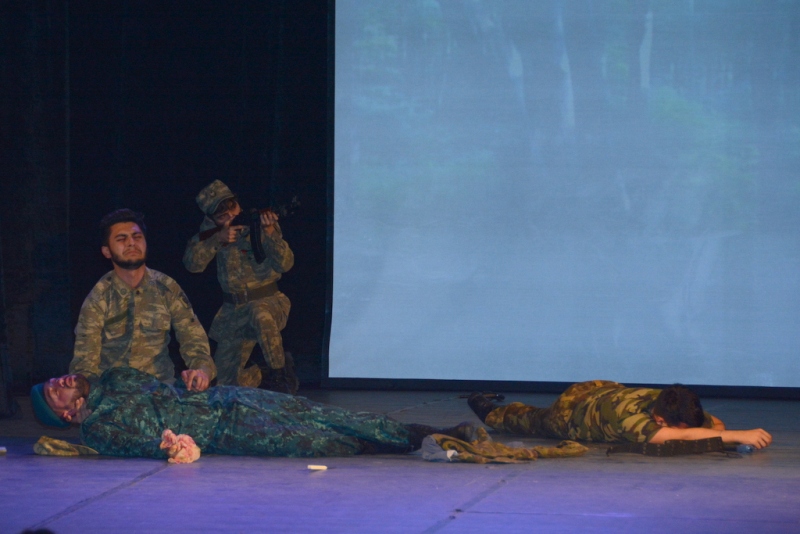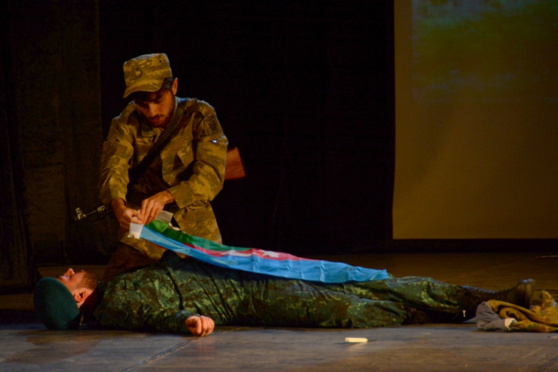 Tamaşada Rusiyaya köçən azərbaycanlı müəllimin Xocalı faciəsindən sonra Vətənin müdafiəsi üçün Azərbaycana geri dönməsindən və apardığı qəhrəmanlıq mübarizsindən bəhs olunub. Gərgin dram, faciə və mübarizə əzminin yaşandığı tamaşa izləyənlərə duyğulu anlar yaşadıb.